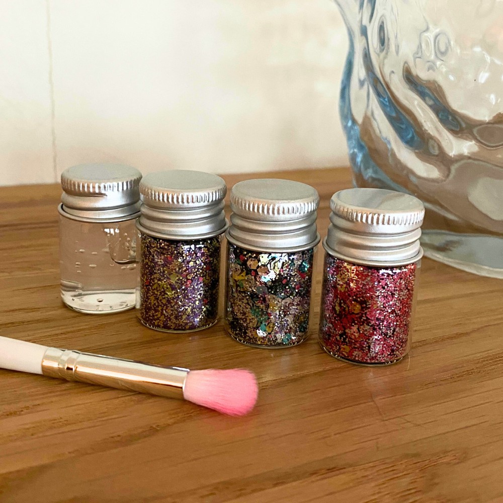 Vårt kosmetiske glitter er et miljøvennlig plantebasert løst glitter som brytes ned i naturen. Det er vegan og er ikke testet på dyr. De naturlige fargestoffene kan smitte av på hud, spesielt de mørke fargene. Vask bort med mild såpe. Bioglitter er ikke spiselig og skal ikke påføres for nærmt øyet.