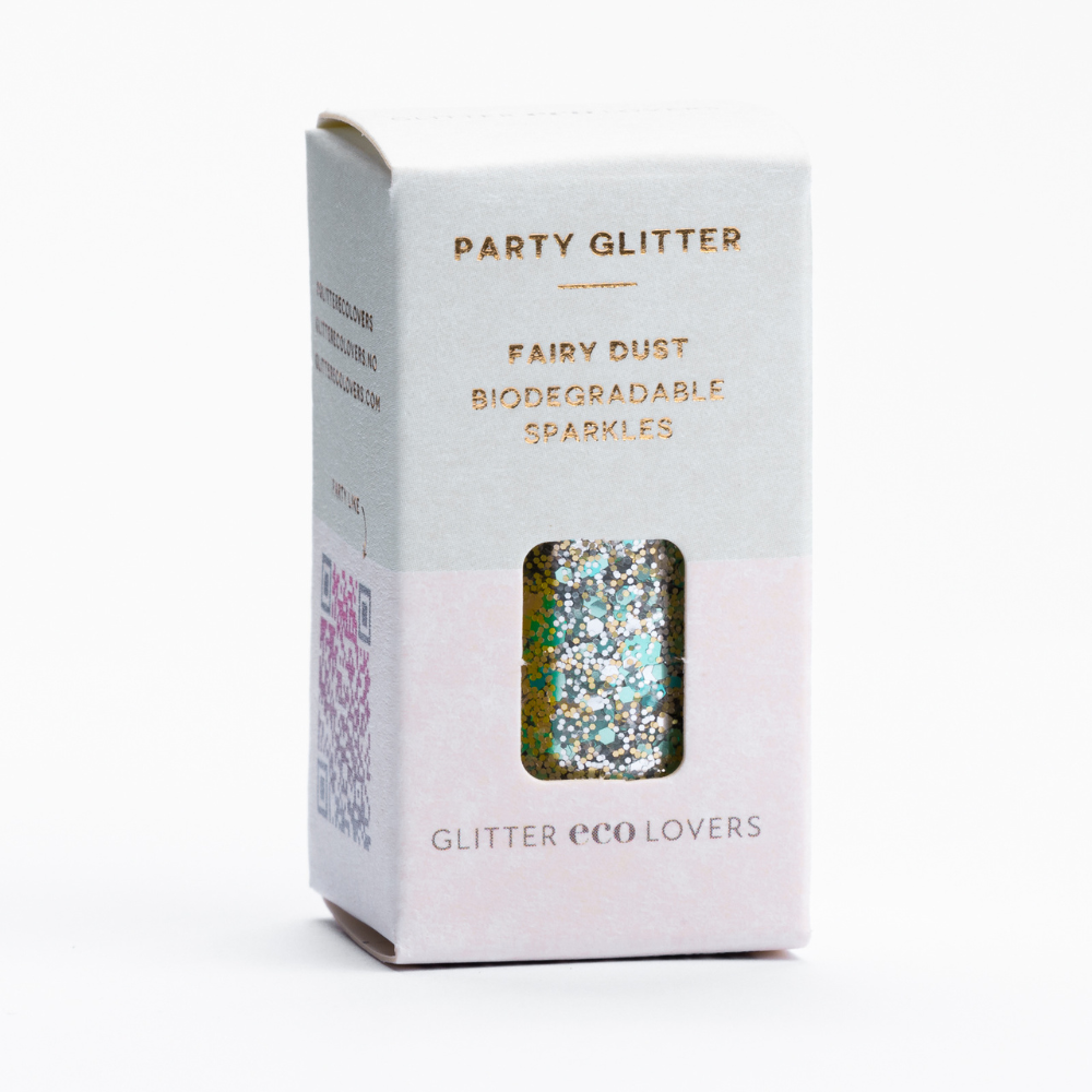 Vårt kosmetiske glitter er et miljøvennlig plantebasert løst glitter som brytes ned i naturen. Det er vegan og er ikke testet på dyr. De naturlige fargestoffene kan smitte av på hud, spesielt de mørke fargene. Vask bort med mild såpe. Bioglitter er ikke spiselig og skal ikke påføres for nærmt øyet.