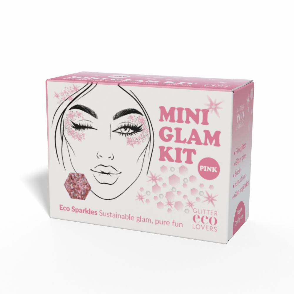 Pink Mini Glam Kit – reiseklar i en fei! Rosa & holografisk sølvglitter, plastfritt, nedbrytbart, vegansk og ikke testet på dyr.