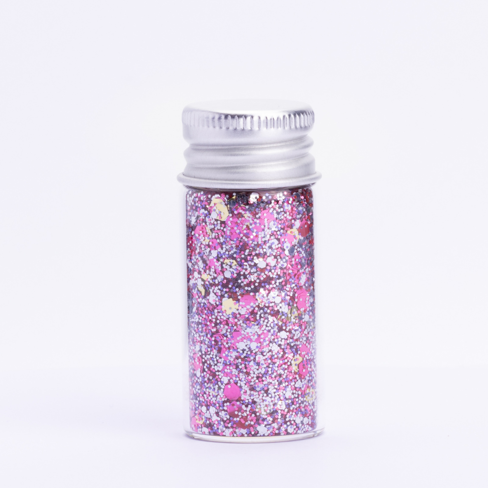 Unicorn Fantasy Party Glitter er en magisk glittermiks i rosa og sølv toner, med lekre hexagon-formede glitterkorn som gir maksimal glans og eventyrfølelse. Dette er glitteret for alle som elsker enhjørninger, fantasi og litt ekstra sparkle i hverdagen – akkurat som oss 🦄✨